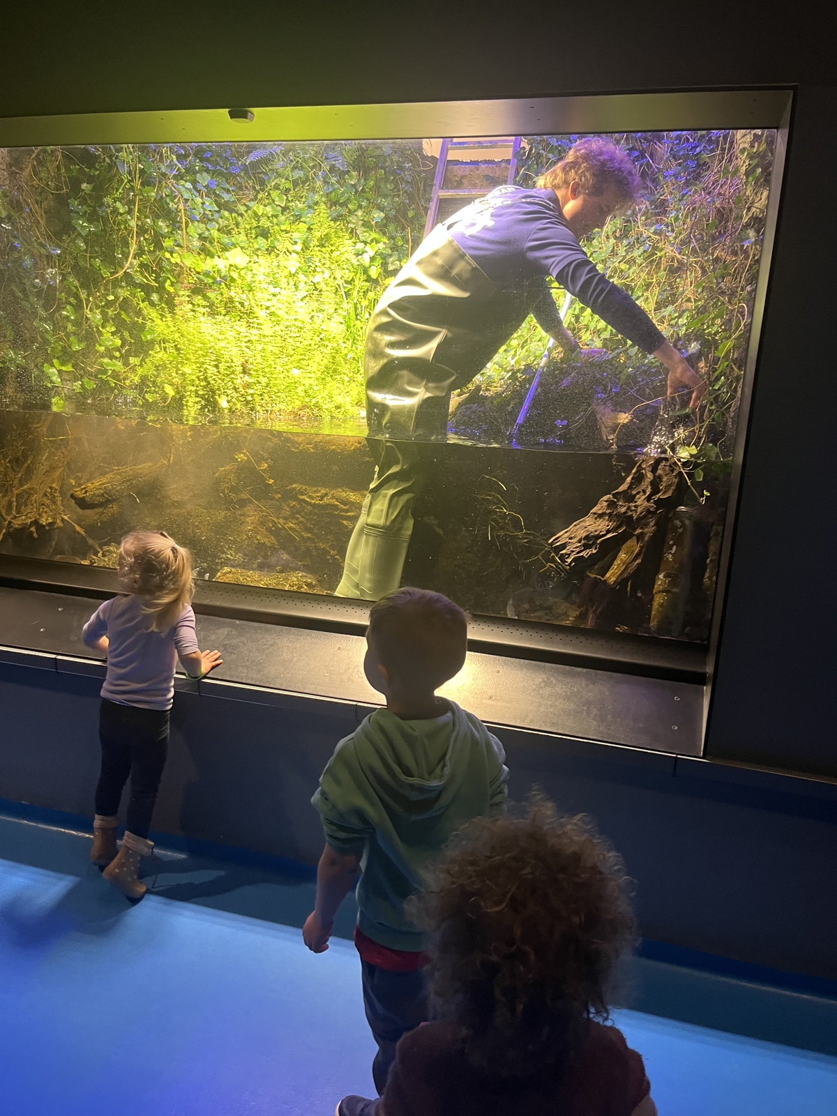 Vi kiggede på de store hammerhajer, hilste på skildpadderne og besøgte igen dyrene i regnskoven.